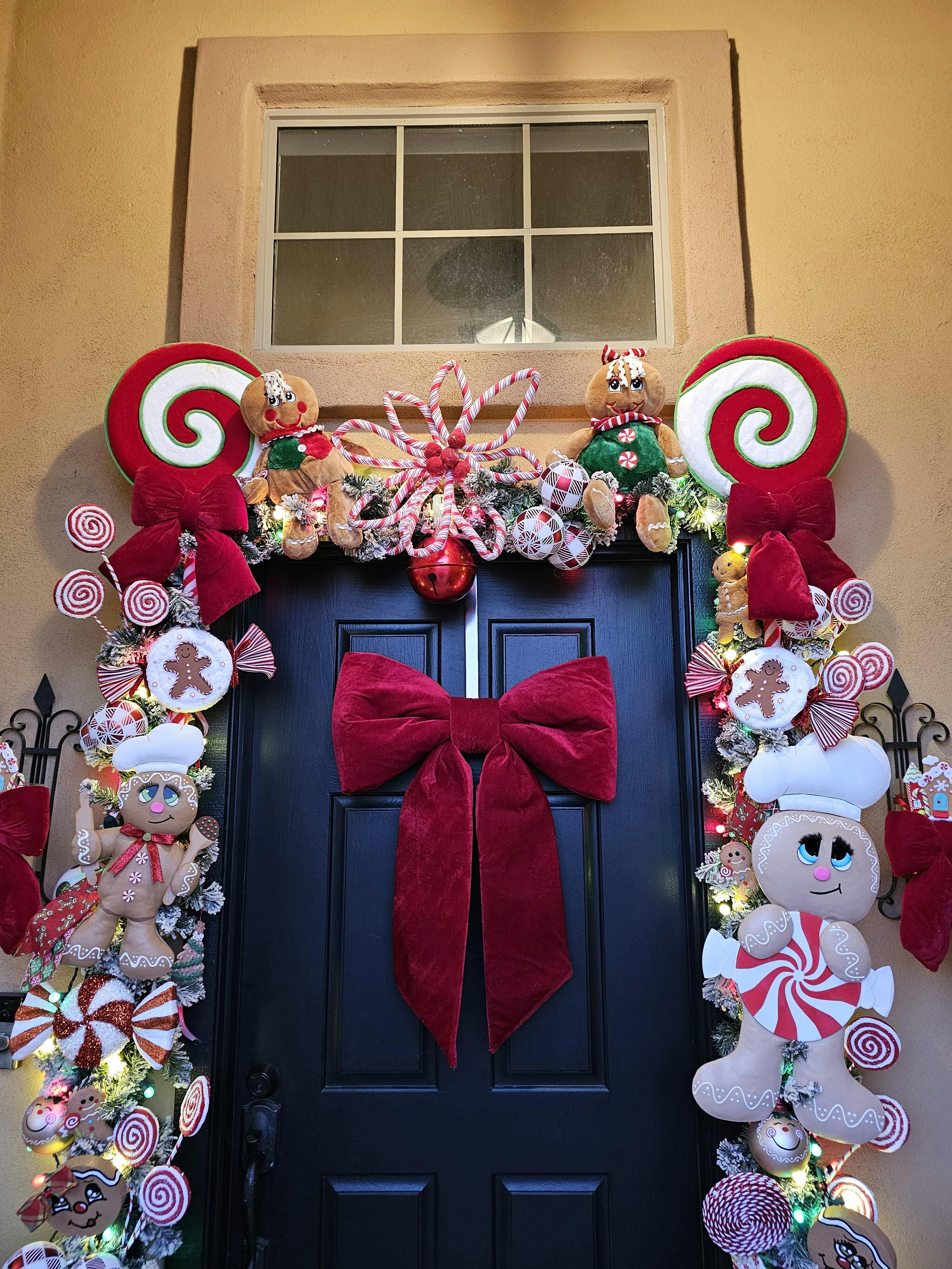 Make a grand seasonal statement with this Extra Large Door Size Wired Padded Red Velvet Bow. Designed for outdoor use, its UV-resistant fabric prevents fading, maintaining vibrant color throughout the season. The wired edges allow for perfect shaping and lasting structure, while the padded velvet adds a luxurious texture. Ideal for enhancing doorways with a festive, elegant touch that withstands the elements.