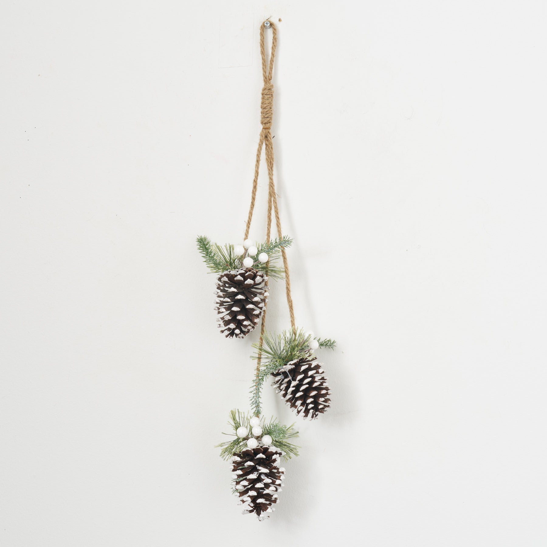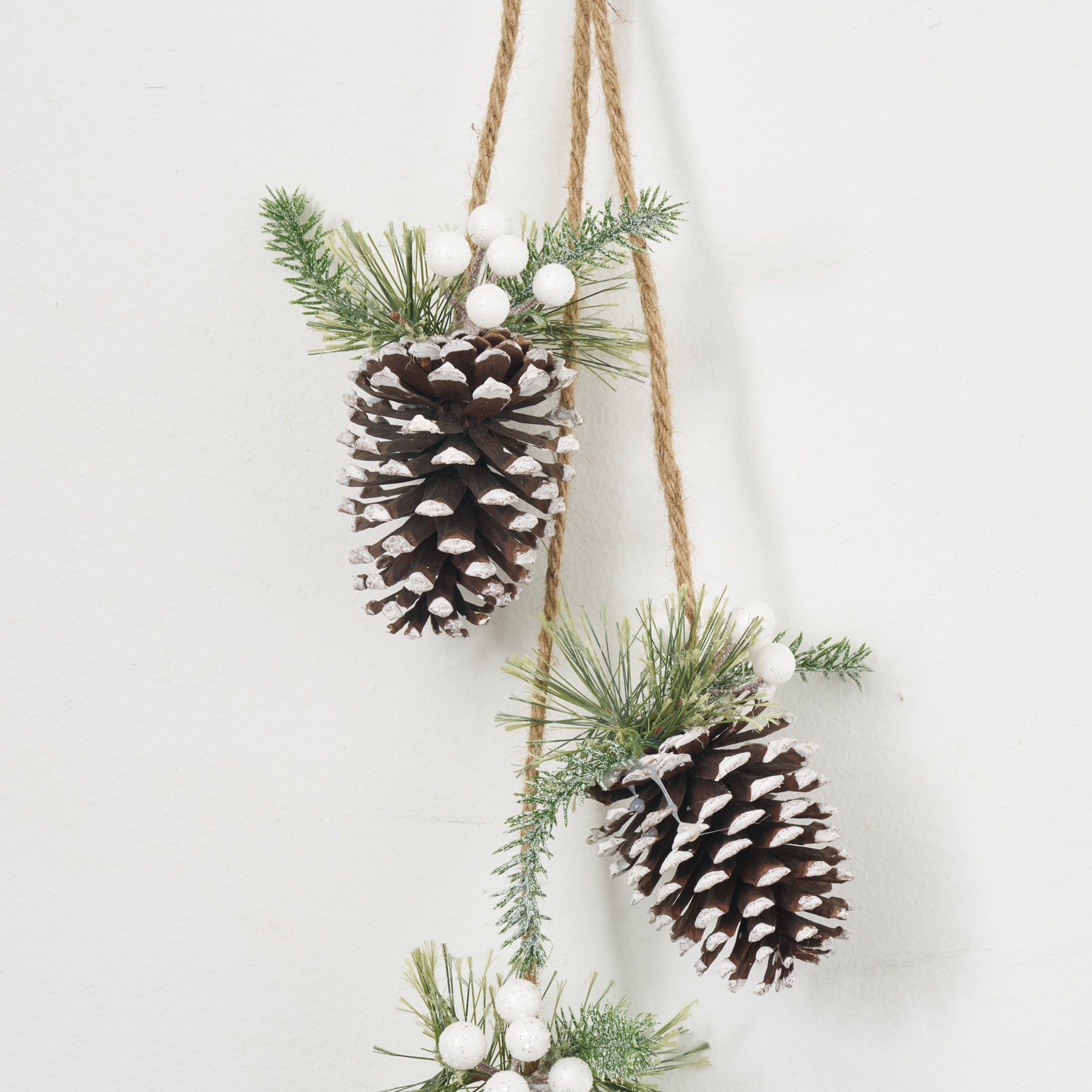 Hanging Frosted Pinecone Christmas Decor Swag with Jute Rope