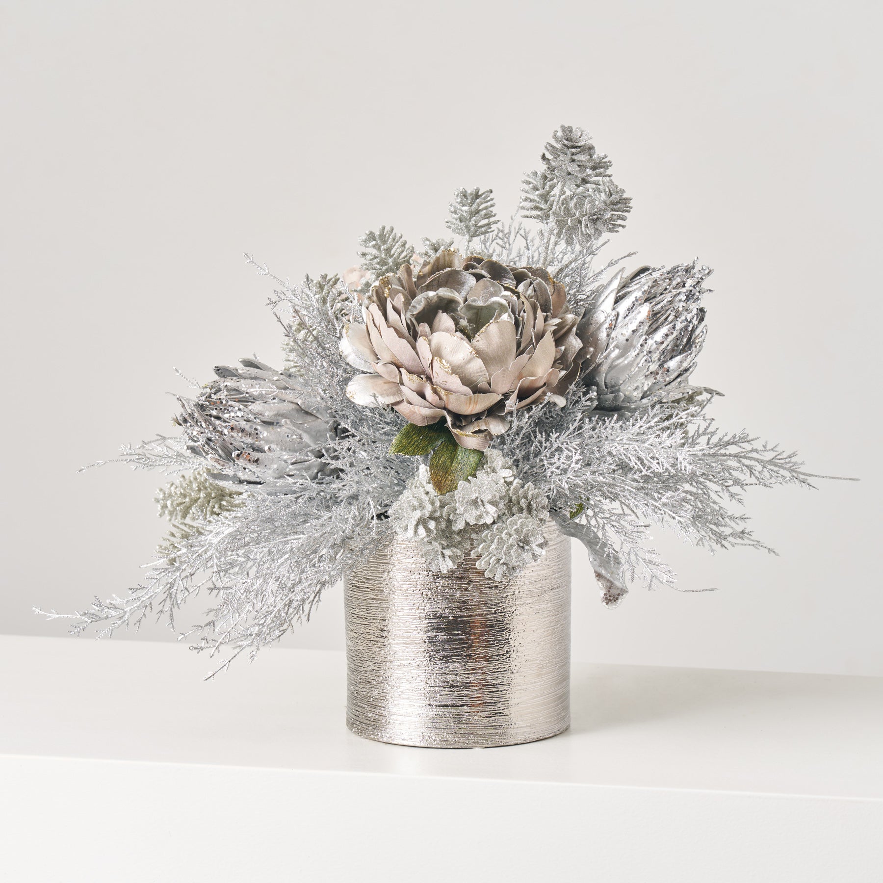 Bring timeless holiday charm to your home with this expertly crafted faux greenery arrangement. Featuring a lush pine tree nestled in a rustic concrete compote, this vintage-inspired piece captures the essence of classic Christmas décor. The realistic foliage requires no maintenance while delivering authentic seasonal ambiance year after year. Perfect for mantels, entryways, or side tables, this arrangement combines the warmth of traditional holiday styling with the practicality of premium faux botanicals. An enduring accent that celebrates the elegance of vintage Christmas aesthetics.