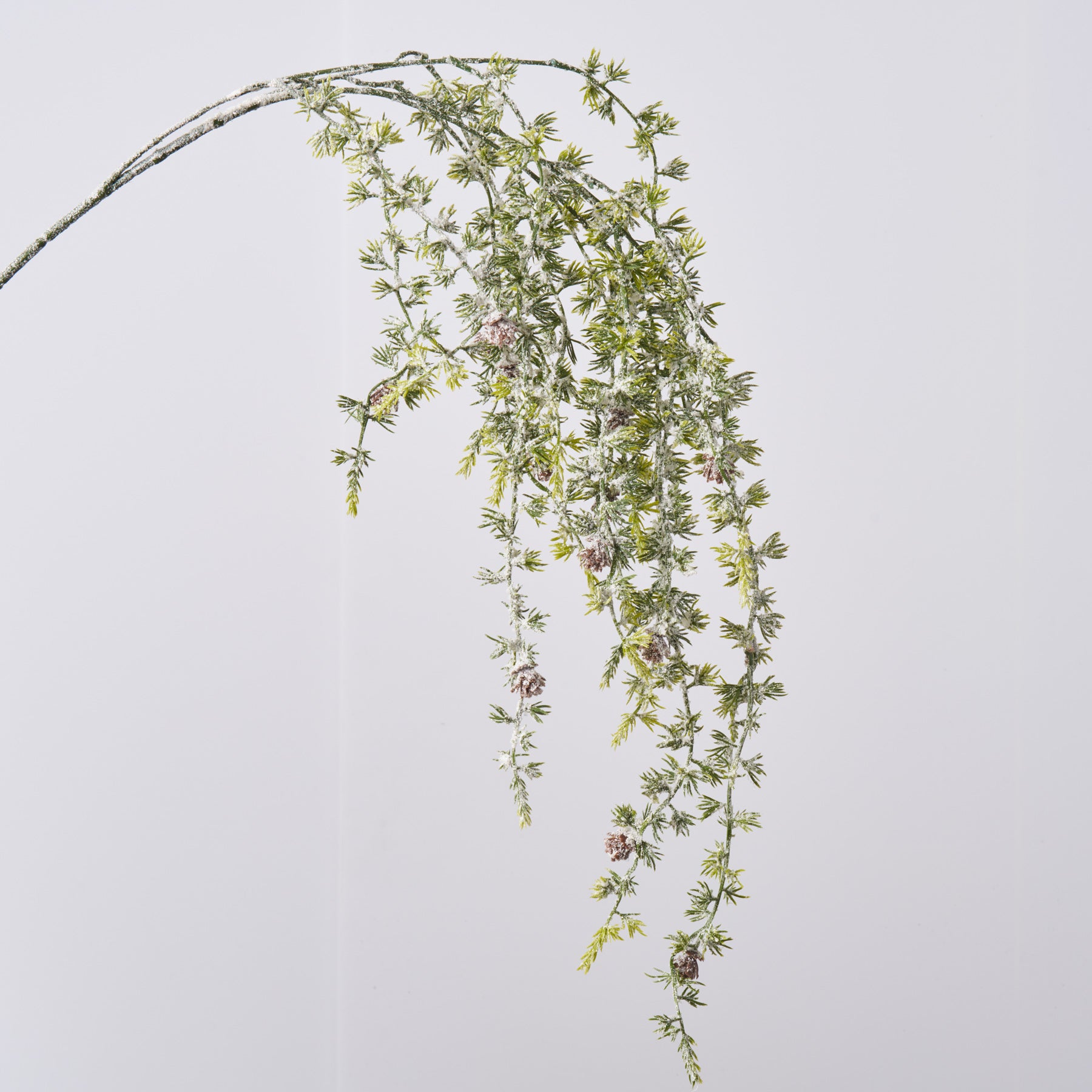 Elevate your holiday décor with this 53-inch Hanging Glittered Pine Branch featuring mini pinecones. Crafted with realistic faux greenery, it brings the charm of winter indoors without the maintenance. The subtle glitter adds a festive sparkle, making it ideal for mantelpieces, doorways, or centerpieces. Durable and reusable, this stem provides a versatile accent that complements any seasonal setting with expert-level style and ease.