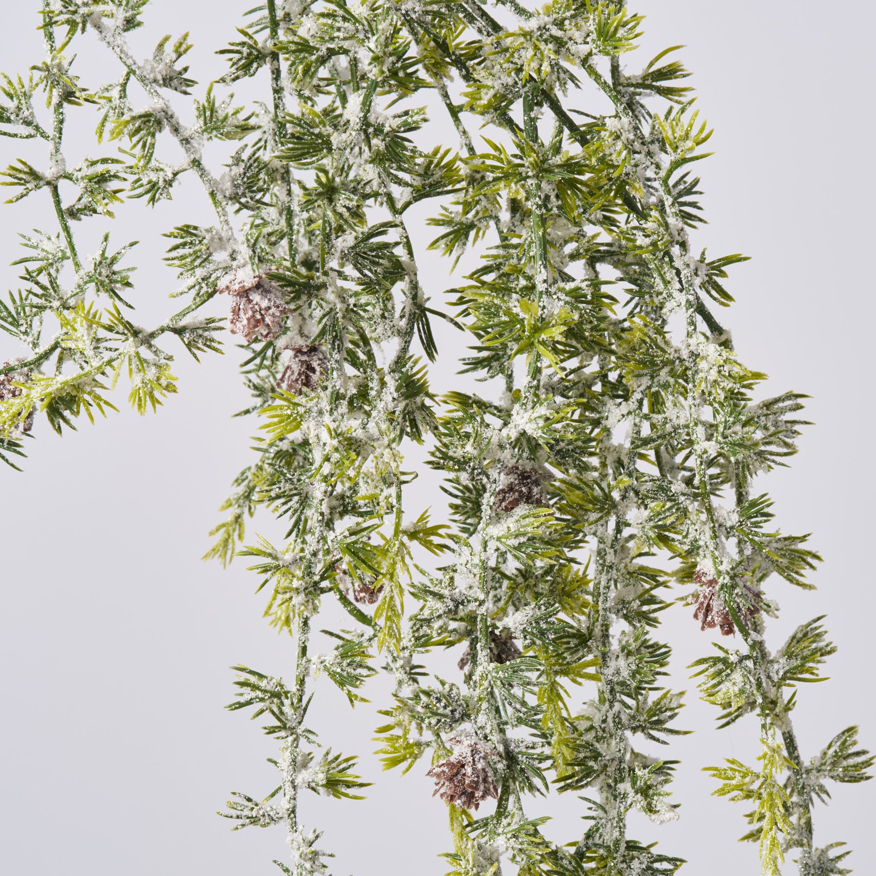 Hanging Glittered Pine Branch with Mini Pinecones Holiday Faux Greenery Stem - 53"