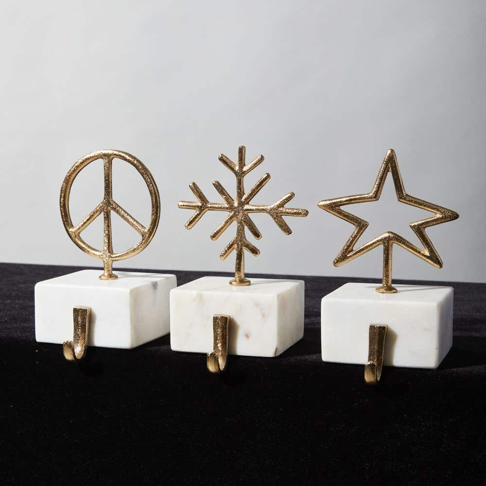 Antiqued Gold Metal & Faux Marble Christmas Stocking Holders - 3 Options Available