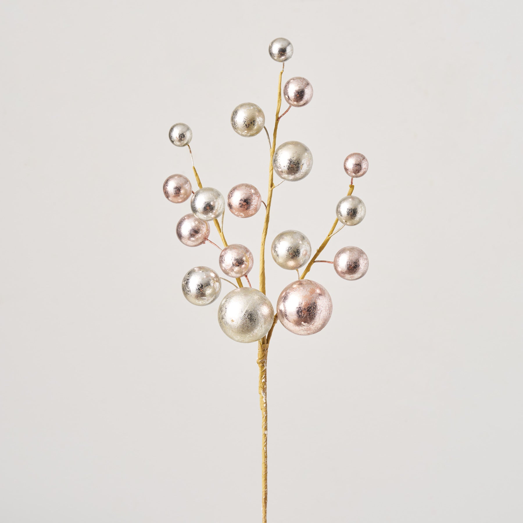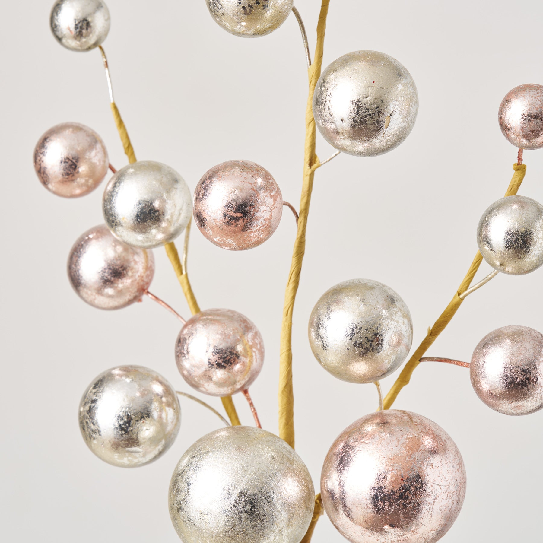 Gold Glitter Tinsel Hanging Ball Ornament Stem Bunch - 36"