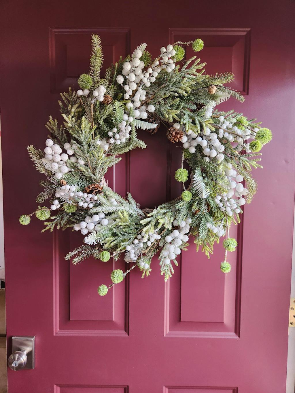 Our White Sugar Berry, Pinecone & Winter Greenery Holiday Christmas Front Door Wreath is the perfect statement for your home! Expertly designed with a blend of White Sugar Berry, Pinecone & Winter Greenery, our Holiday Christmas Front Door Wreath adds a touch of elegance and festive spirit to your home. Give the gift of lasting beauty and tradition with our meticulously crafted wreath.
