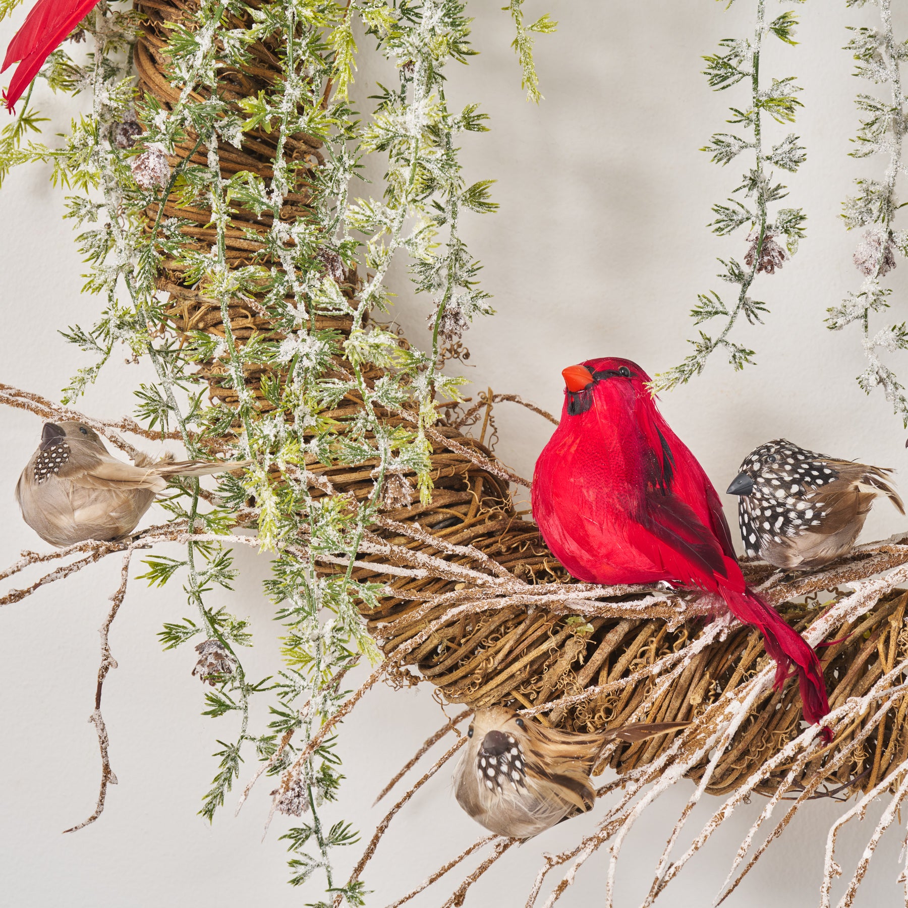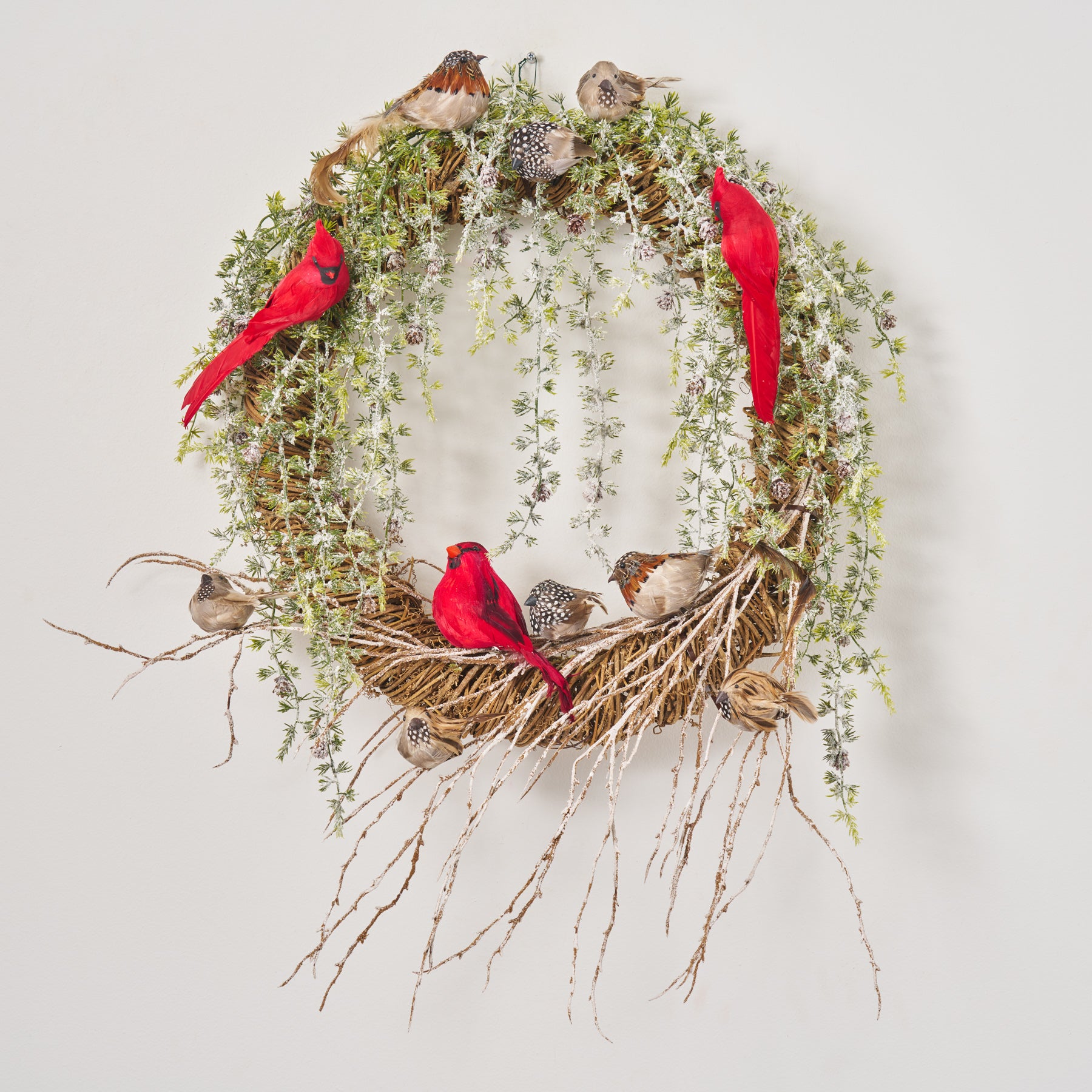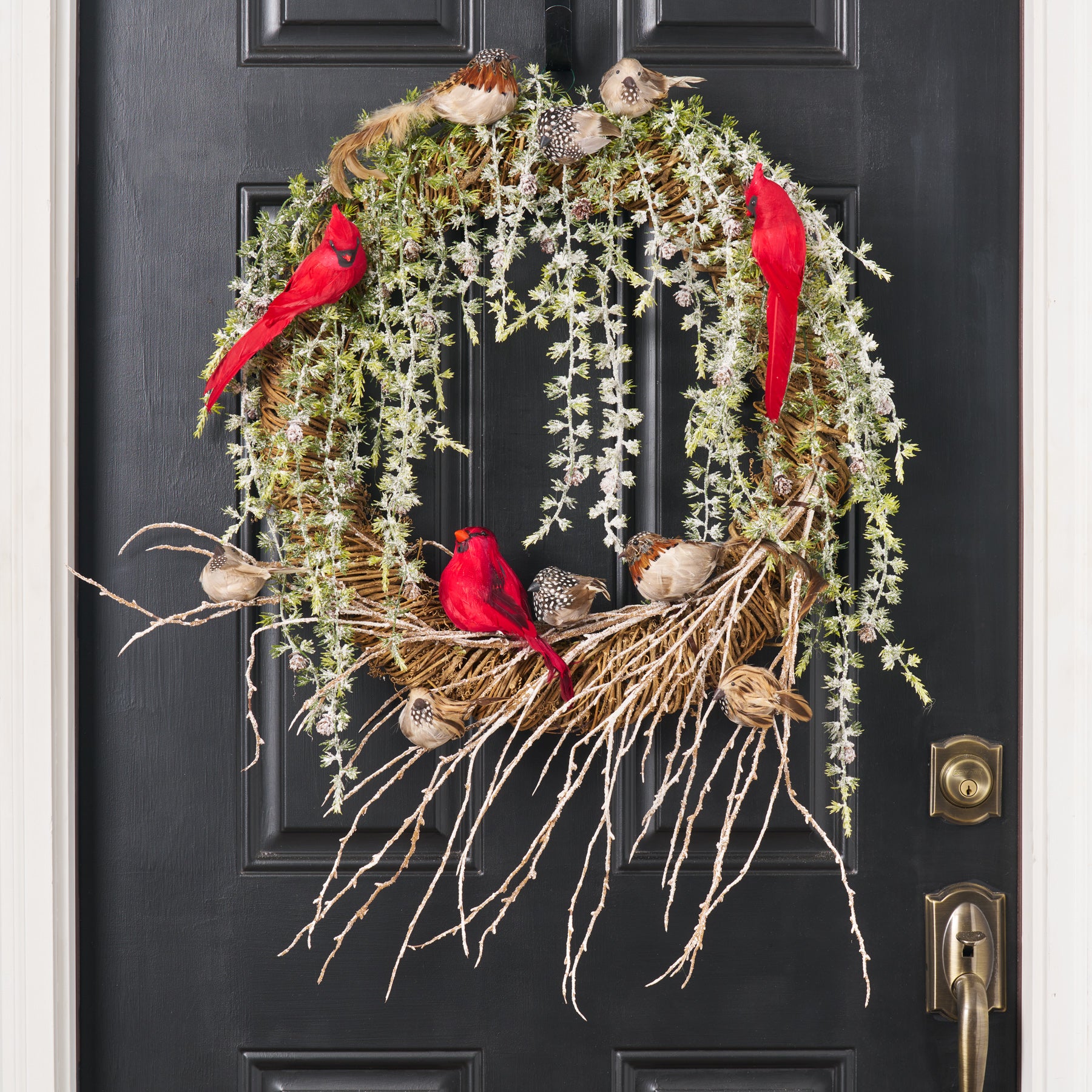 Peace On Earth - White Singing Bird, Briar Pine, Frosted Mistletoe Berry Front Door Holiday Wreath