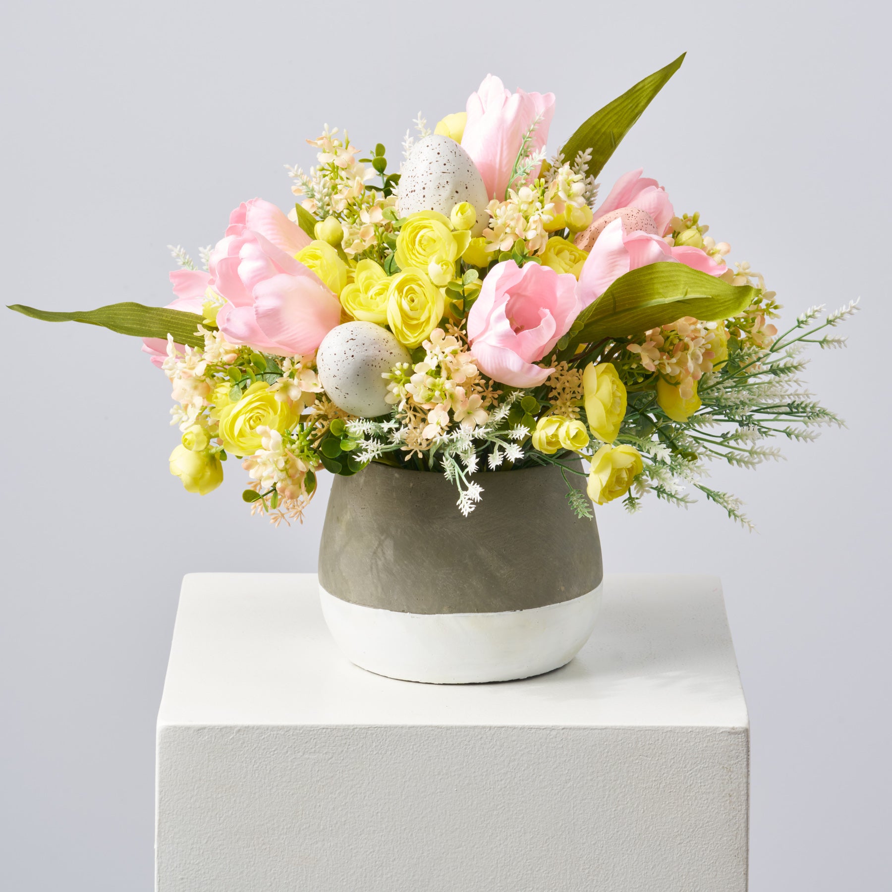 Our artificial water is precisely formulated to simulate the look of clean, fresh water. It remains clear after hardening to hold each arrangement in place. Your favorite blooms are always in season when you choose an original Darby Creek Arrangement!