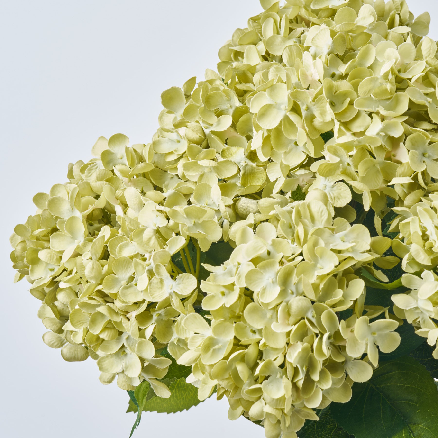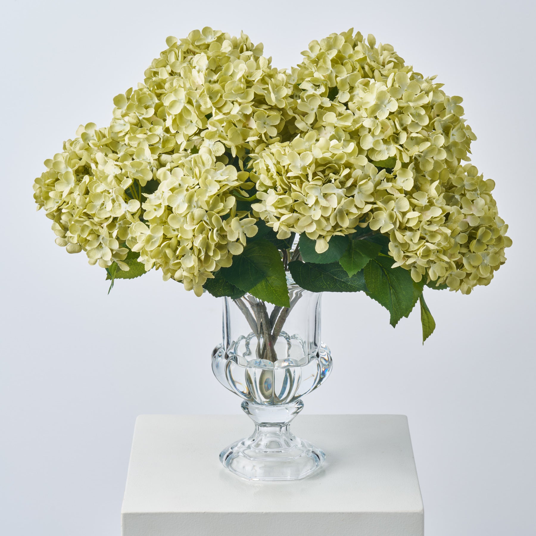 Realistic Limelight Green Hydrangea Blooms Water Illusion Everyday Arrangement in Beveled Glass Large Urn Vase