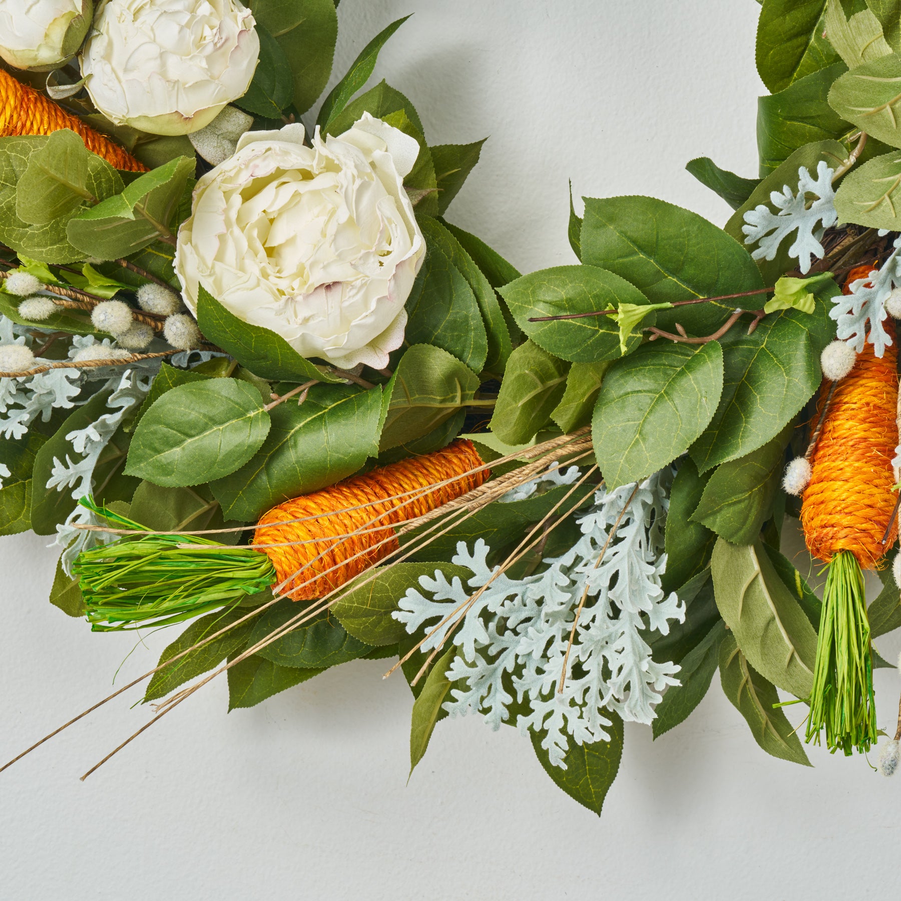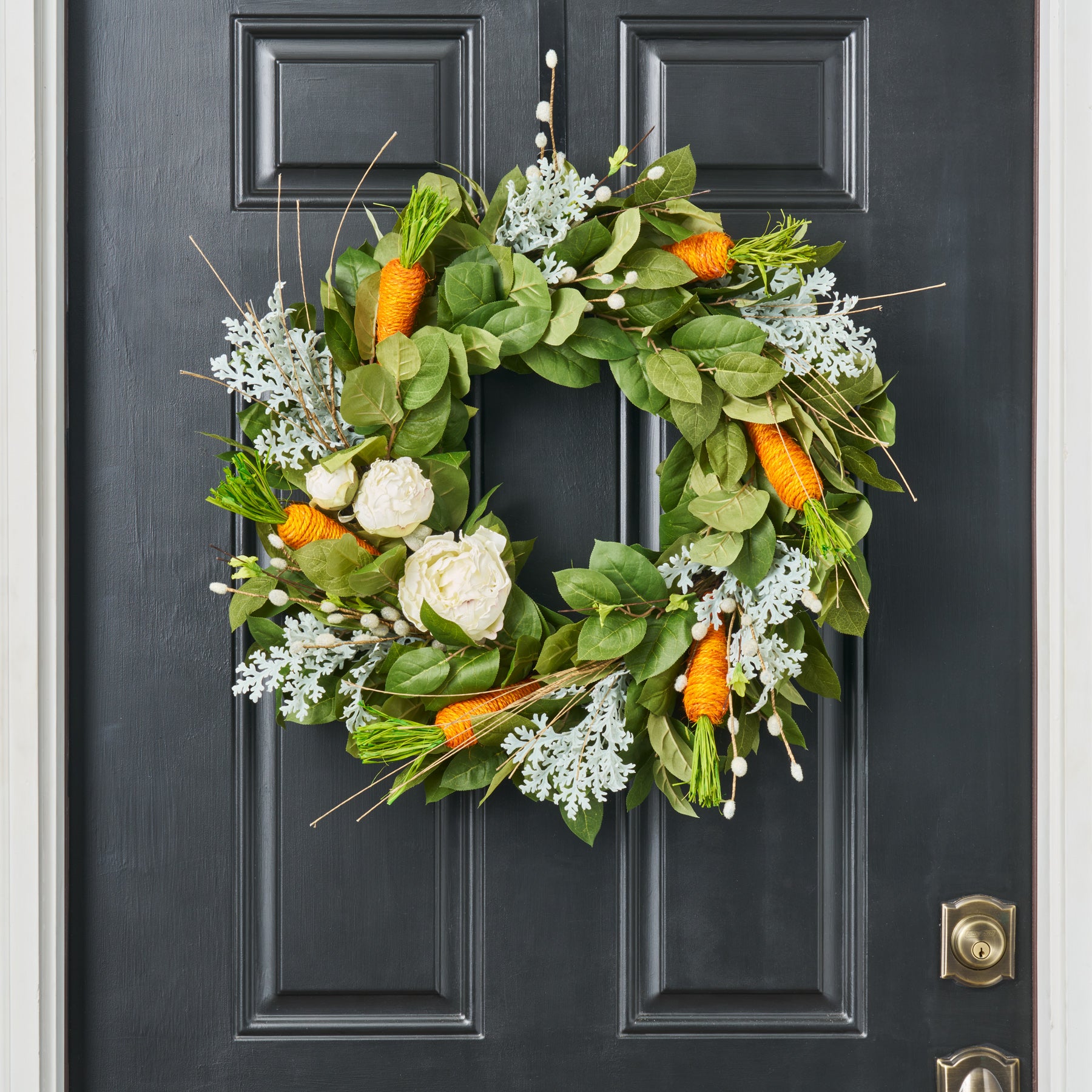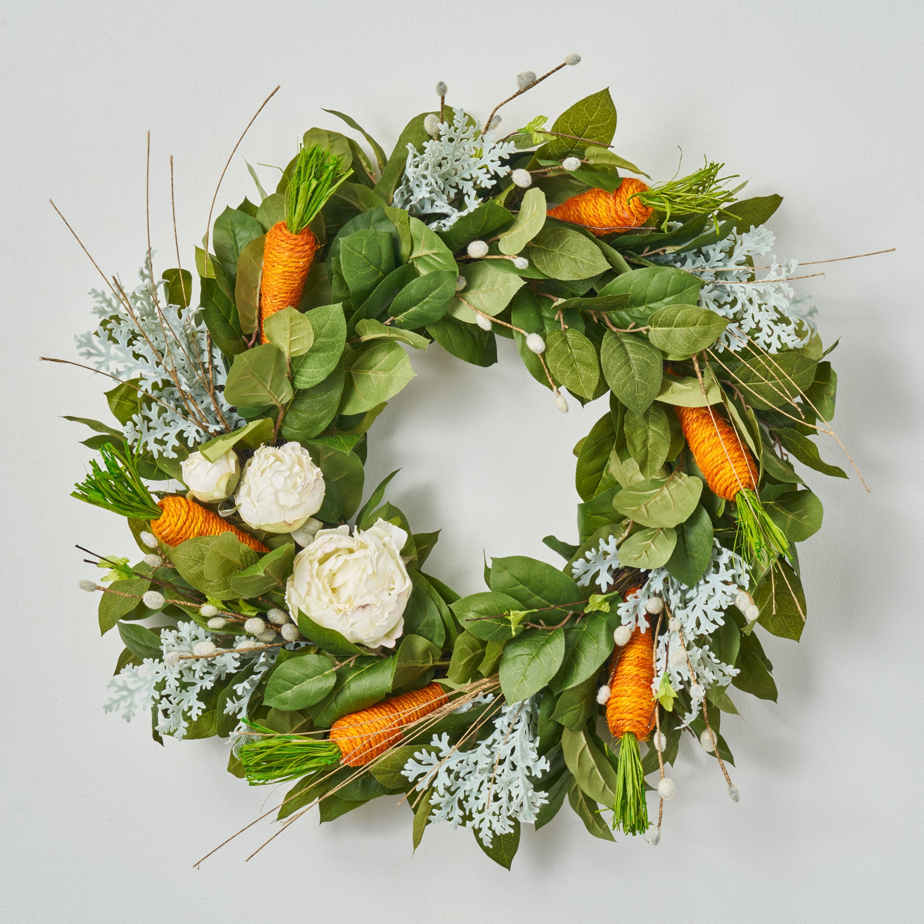 Carrot & Peony Patch with Pussy Willow Easter Decor Spring Summer Salal Leaf Front Door Wreath