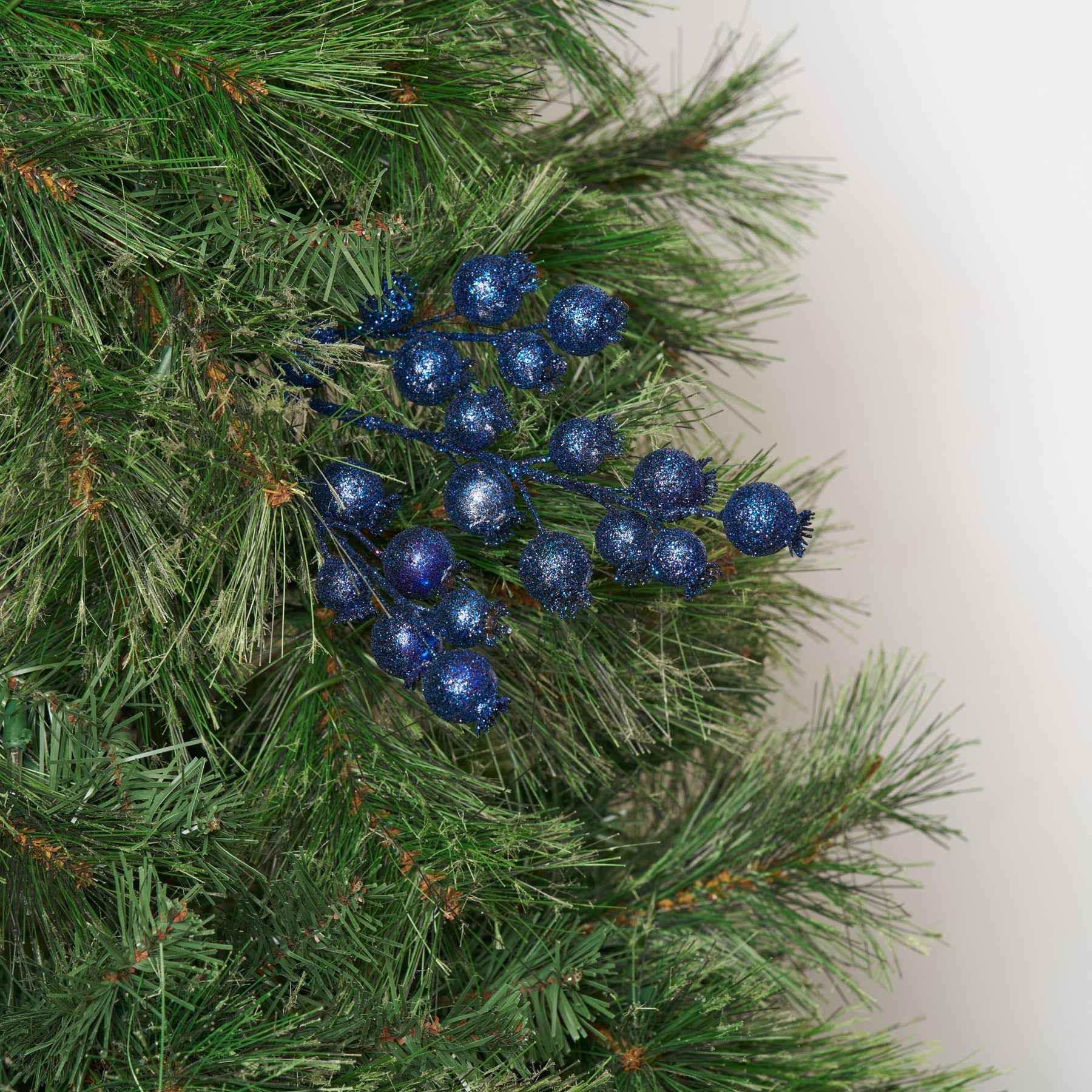 Upgrade your holiday decorations with our Waterproof Midnight Blue Glitter Berry Outdoor Holiday Stem Spray. This 21" spray adds a touch of glamour to your outdoor space, while the waterproof feature ensures long-lasting use. Transform your holiday season with this stunning and functional spray. Arrange a few of these faux stems in one of our glassware, vases or vessels for a minimalist centerpiece that brings lasting delight to any room.