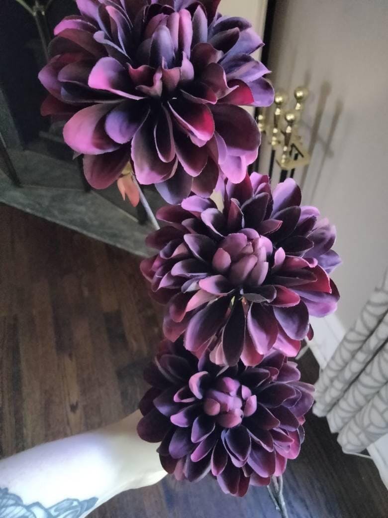 Introduce elegance into your home with our Dark Maroon Silk Dahlia Bloom & Bud Faux Floral Stem Spray. Its realistic design, made from high-quality silk materials, adds a touch of sophistication to any space. With a length of 35 inches, this beautiful stem spray is perfect for creating stunning floral arrangements. Don't forget to shop our collection of vessels and vases to display your beautiful new dahlia stem.