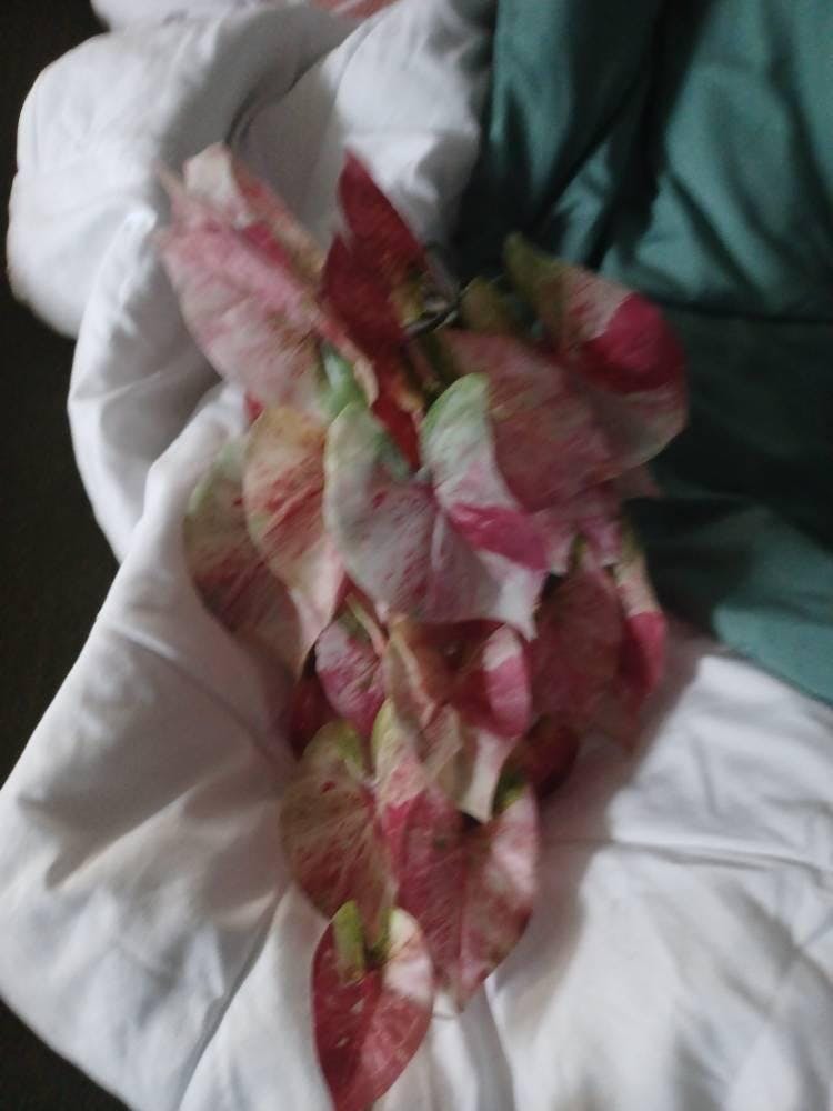 Add a touch of tropical elegance to your space with this 17" Caladium Leaf Bush Spray. Featuring a vibrant mix of red, pink, and green hanging leaves, this realistic foliage creates a dramatic draping effect perfect for arrangements, planters, or standalone decor. The versatile design complements any interior setting while requiring zero maintenance—ideal for year-round botanical beauty. Don't forget to shop our collection of vessels and vases to display your beautiful faux greenery and florals.