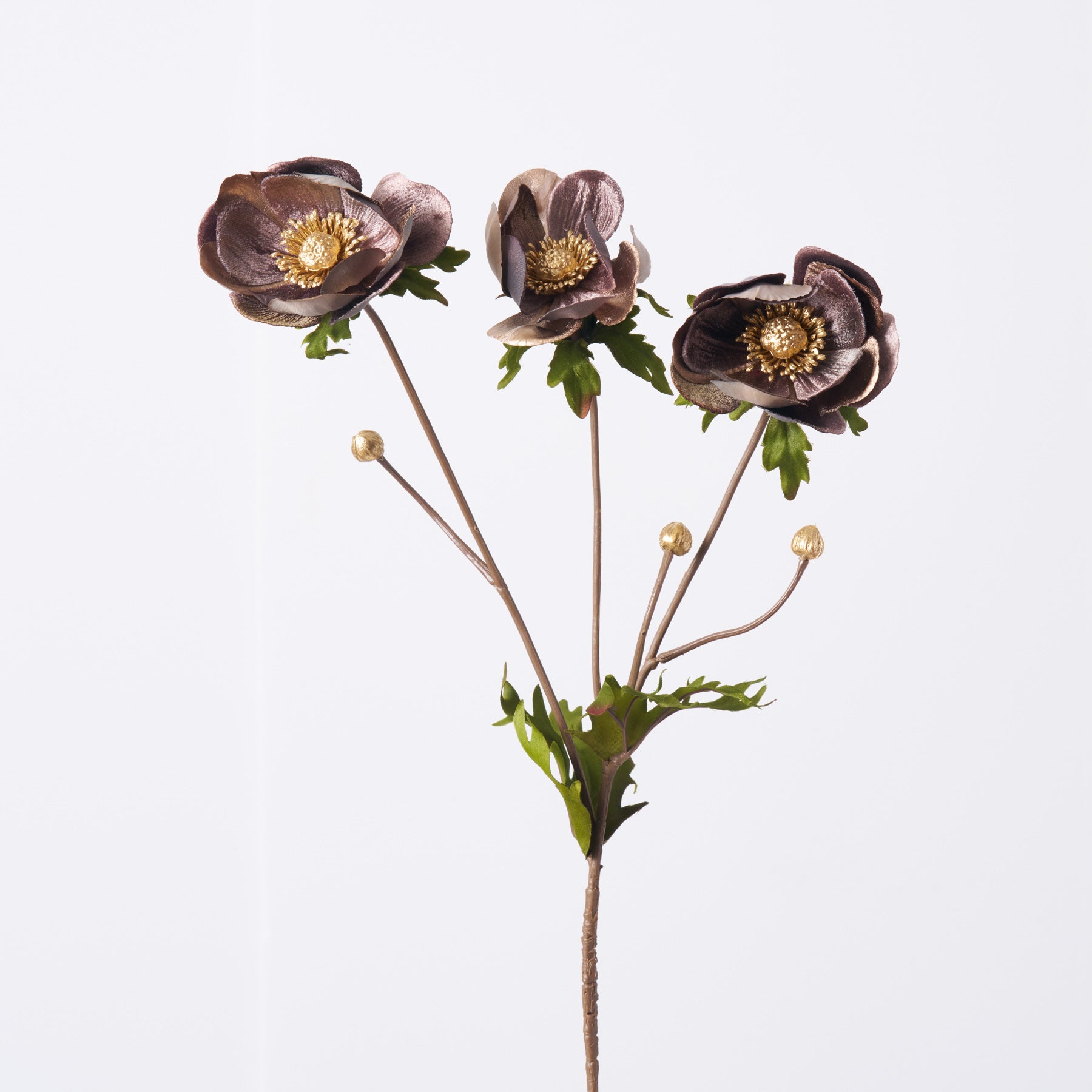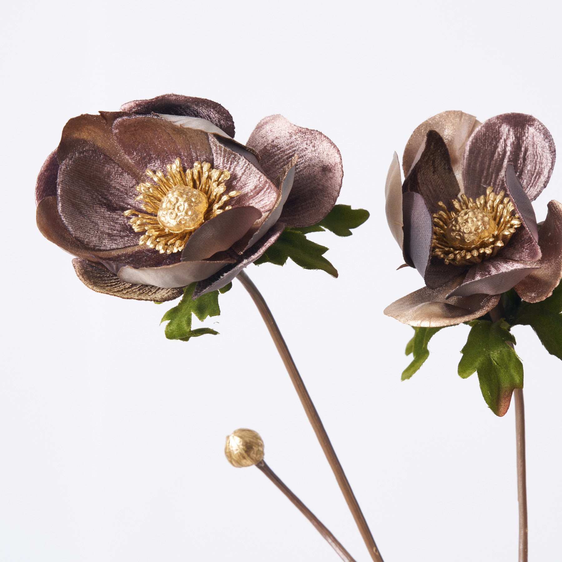 Grey Velvet Anemone Branch Single Stem Faux Floral Spray - 29"
