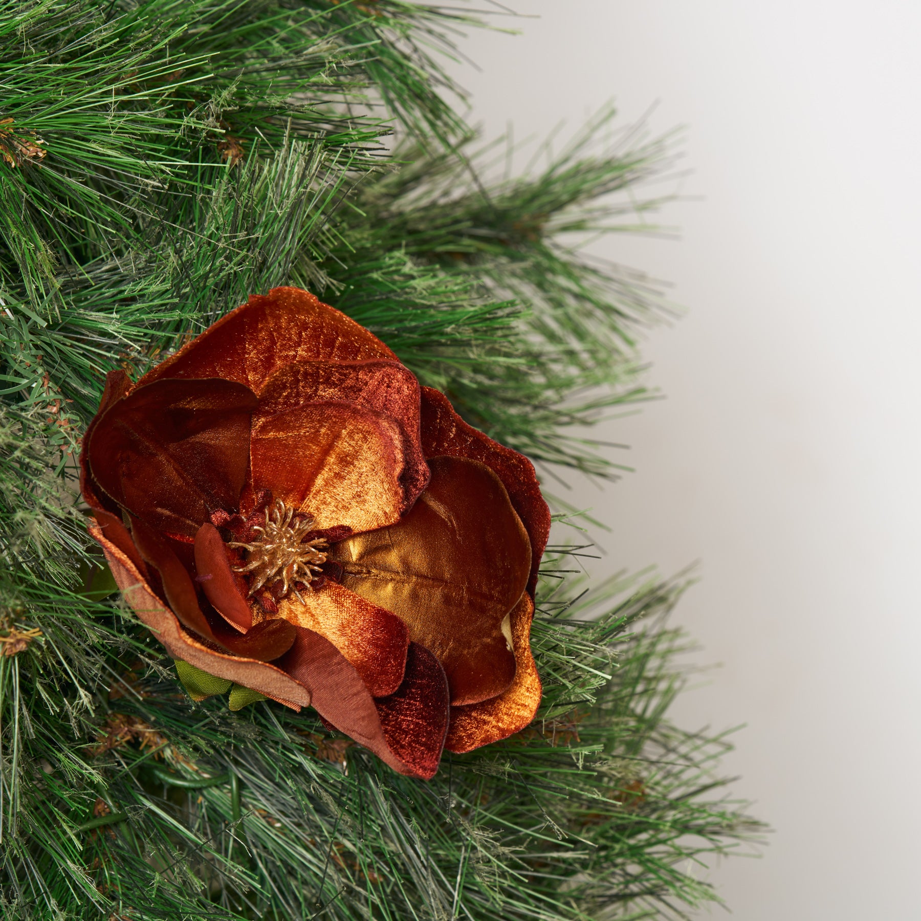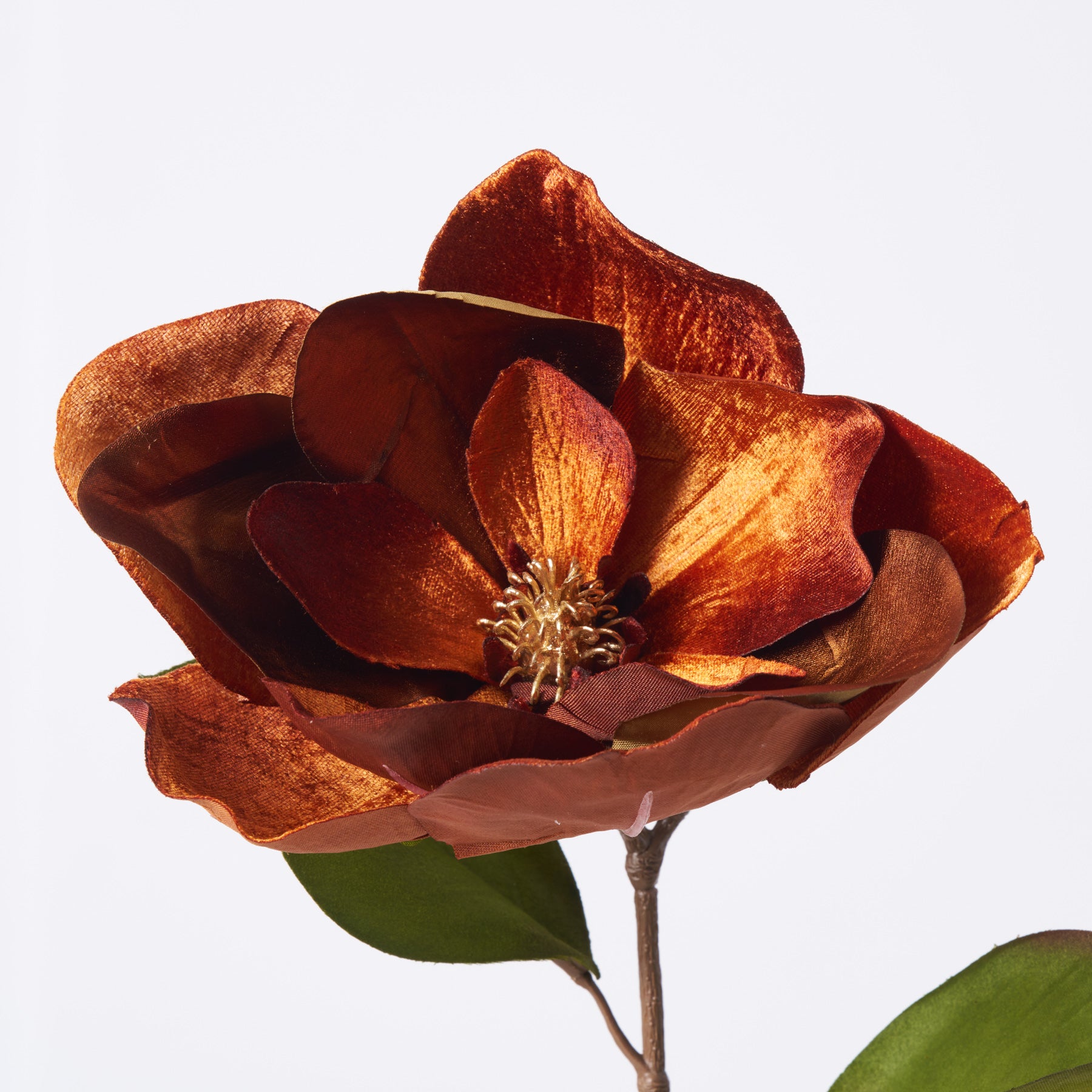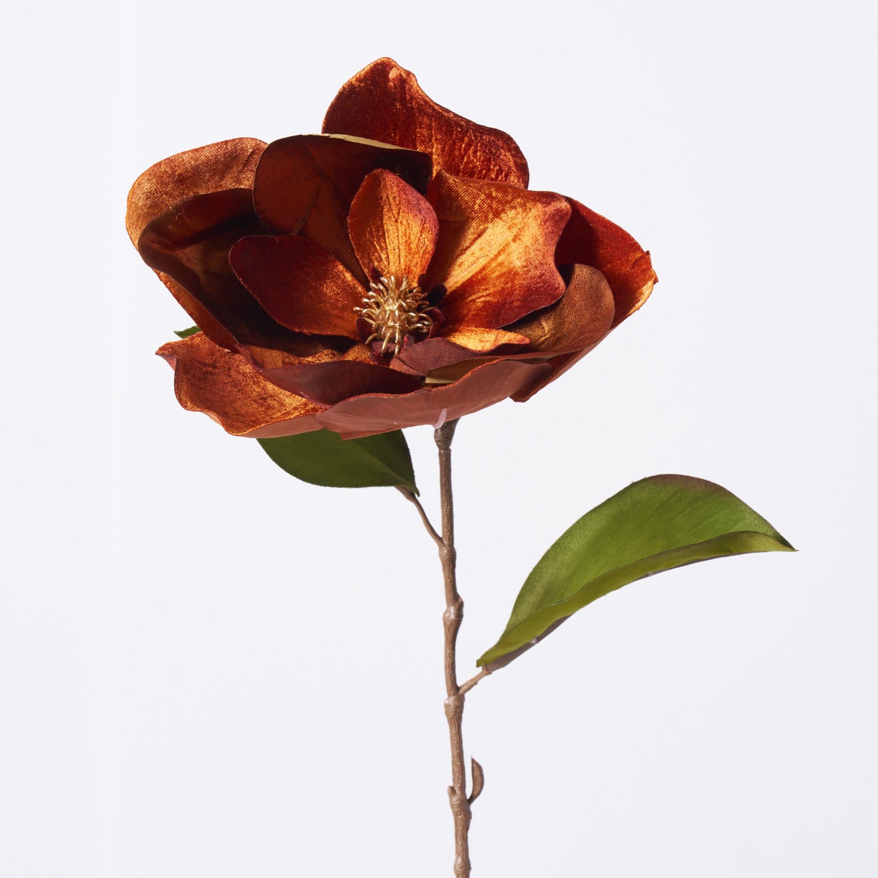 Nutmeg Brown Velvet Magnolia Bloom Single Stem Faux Floral Spray - 29"