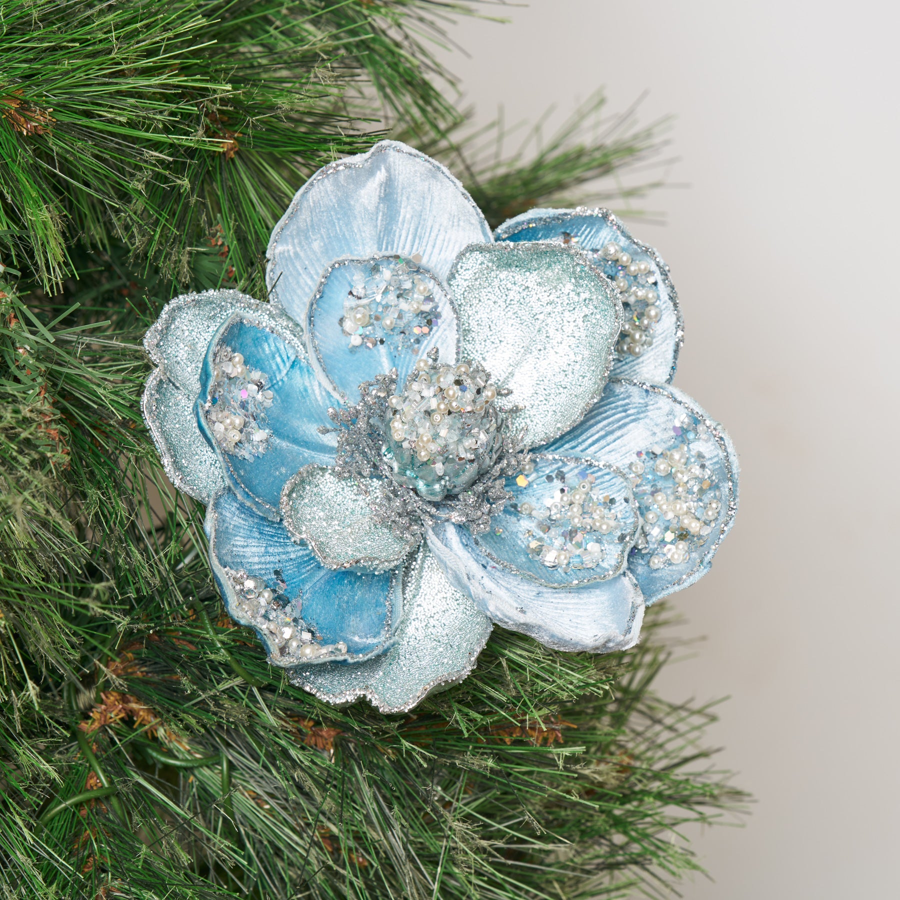 Regular price $34.00Enhance your floral arrangements with this 27" Light Blue Velvet Magnolia Bloom Stem, exquisitely adorned with delicate beads and sequins. Crafted for lasting beauty, its soft velvet petals and subtle shimmer add a refined, elegant touch to any setting without the upkeep of real flowers. Perfect for sophisticated décor, weddings, or seasonal displays, this faux floral stem offers a durable and visually captivating alternative to fresh blooms. Don't forget to shop our collection of vessels and vases to display your beautiful new flowers in.