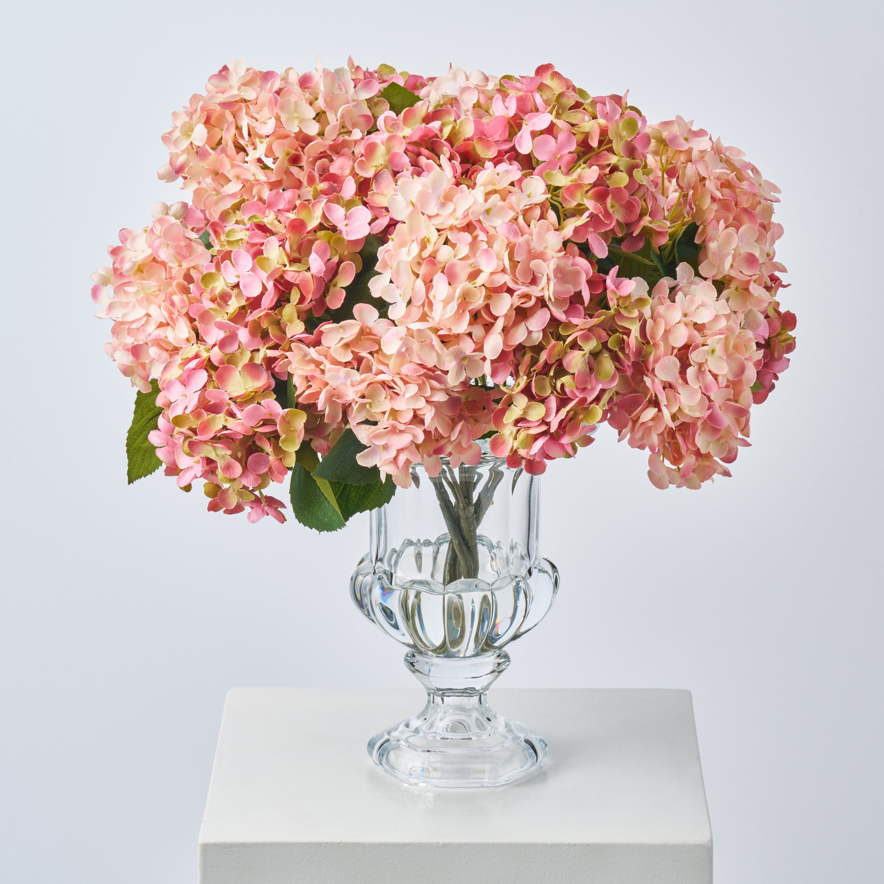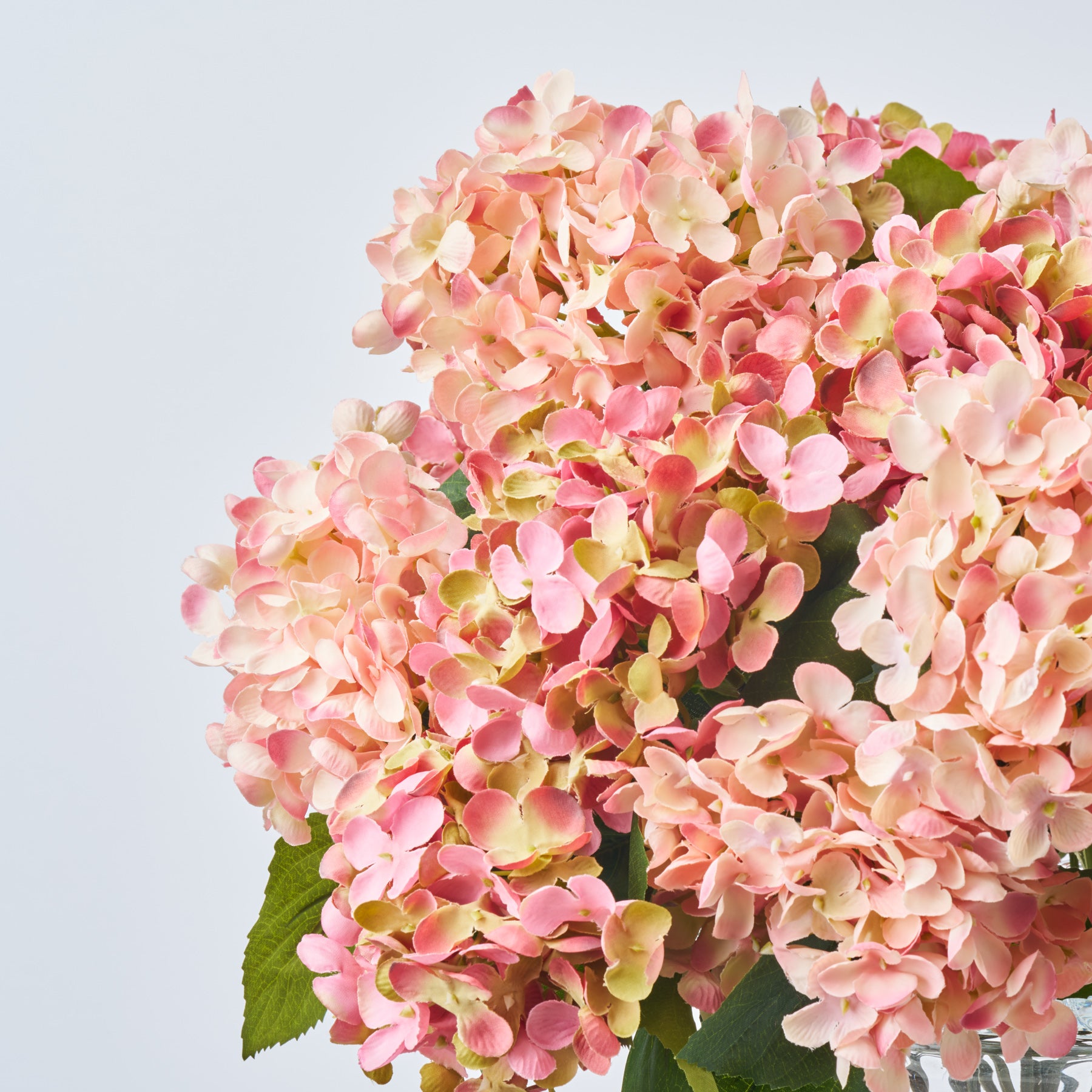 Introduce soft romantic appeal with this 18-inch faux hydrangea stem, featuring a delicate light pink bloom enhanced by Real Touch technology. The tactile petal construction mimics the natural suppleness of fresh hydrangea, while the densely packed florets create impressive visual volume and dimensional presence. Advanced colorfast materials preserve the gentle pink hue through extended use and environmental exposure, eliminating the fading concerns associated with inferior artificial botanicals. Versatile for intimate wedding arrangements, hospitality installations, and permanent displays requiring consistent aesthetic excellence. The compact 18-inch height adapts seamlessly to varied design applications—from accent pieces in mixed compositions to standalone focal elements in smaller vessels. An essential choice for professionals demanding museum-quality artificial flowers with authentic tactile and visual properties. Don't forget to shop our collection of vessels and vases to display your beautiful new nearly natural garden hydrangea stem.