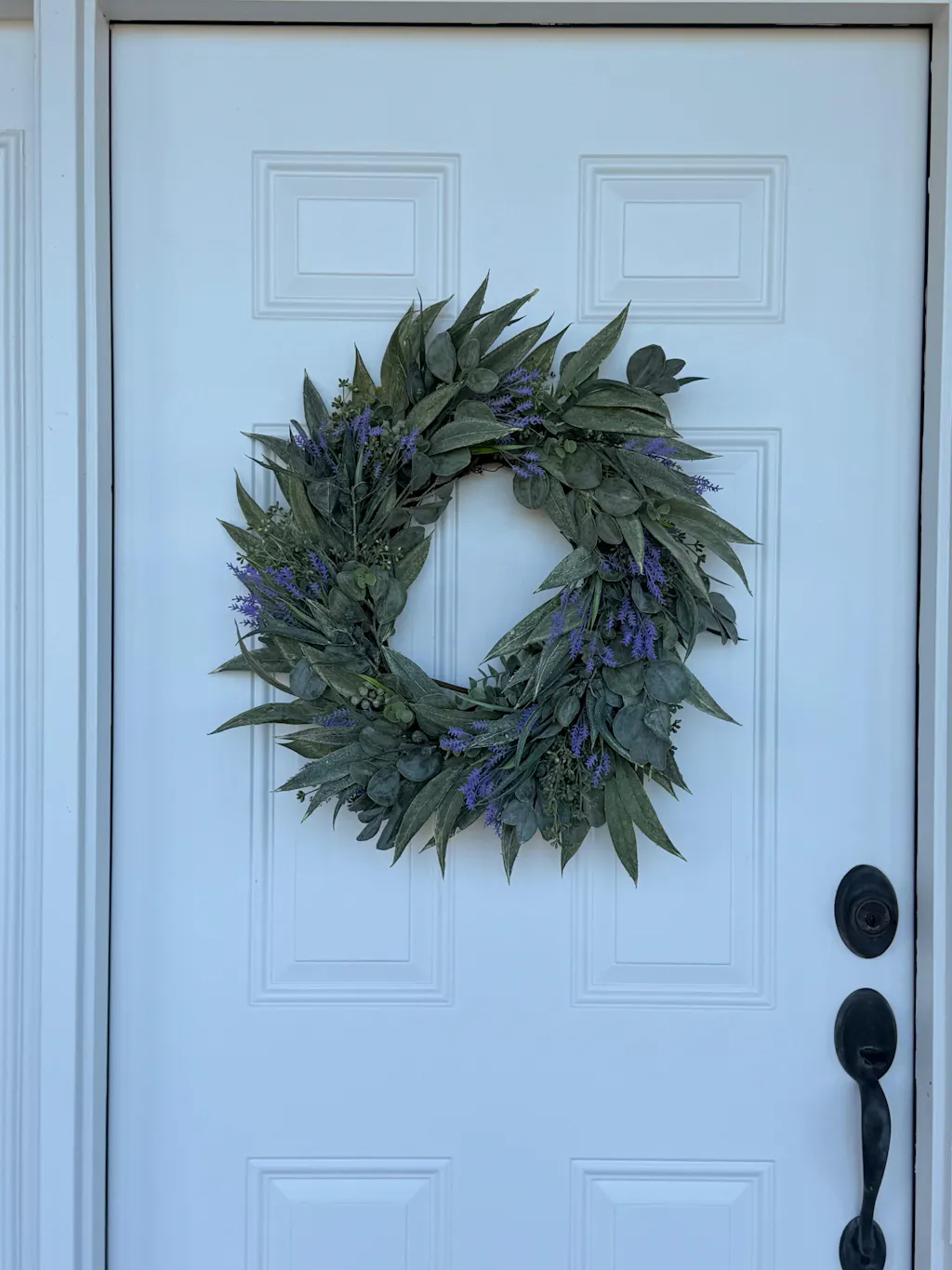 Darby Creek's Everyday Greenery Collection brings year-round spring beauty to your front door, entryway, or mantel with lifelike dusty green needleleaf and seeding eucalyptus accented by French lavender. This handcrafted wreath features fade-resistant botanicals that maintain their fresh appearance season after season, making it an ideal everyday statement piece for any home décor style. Available in three sizes—22", 26", or 30" diameter—each wreath is designed and handcrafted in Ohio using premium materials. Perfect as a lasting gift or a durable addition to your seasonal décor collection, this wreath works beautifully indoors or in covered outdoor spaces.