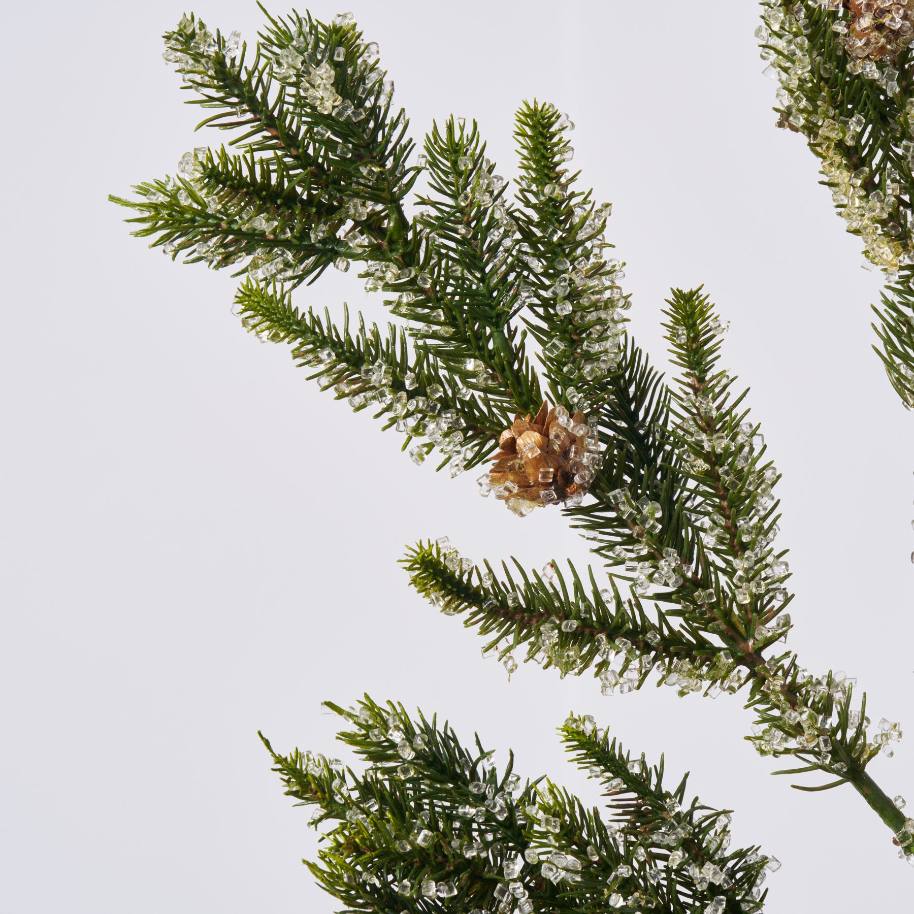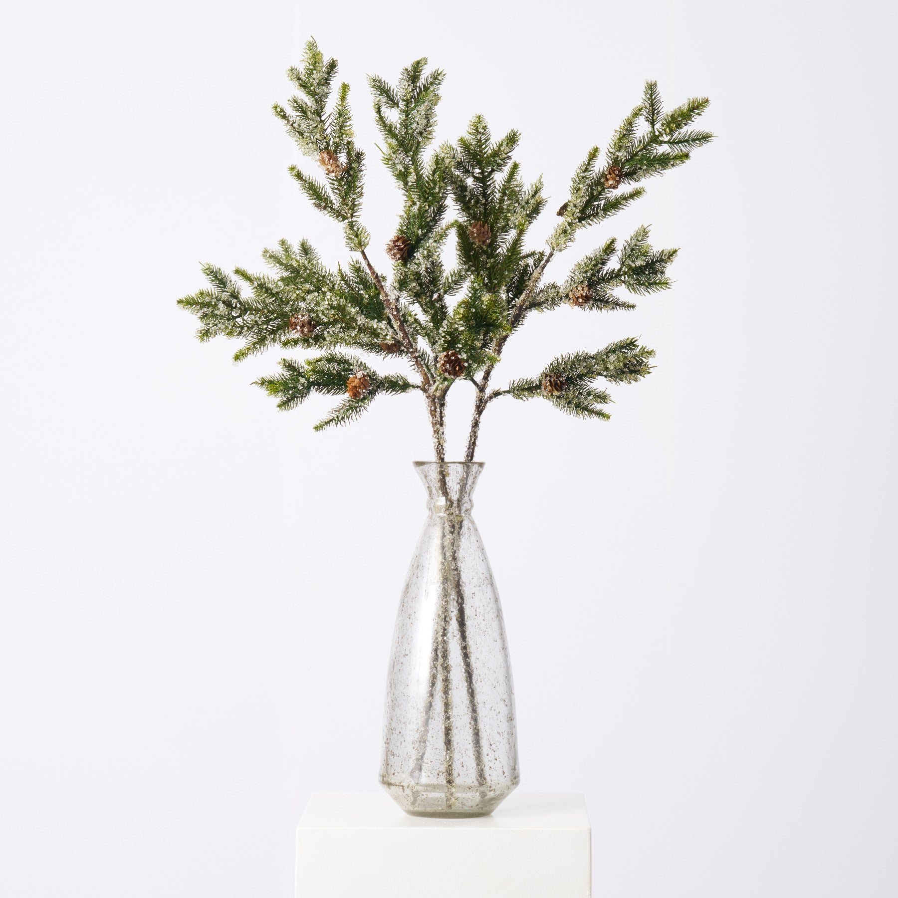 This 36-inch Beaded Angel Pine Branch with Pinecones features lifelike faux winter greenery, enhanced with delicate beads to add subtle sparkle. Crafted to mimic natural pine and adorned with realistic pinecones, it offers a sophisticated touch to seasonal décor, providing long-lasting beauty without maintenance. Ideal for wreaths, centerpieces, or mantle arrangements, this stem brings elegant, expert-crafted greenery to your winter design projects. Arrange a few of these faux stems in one of our glassware, vases or vessels for a minimalist centerpiece that brings lasting delight to any room.